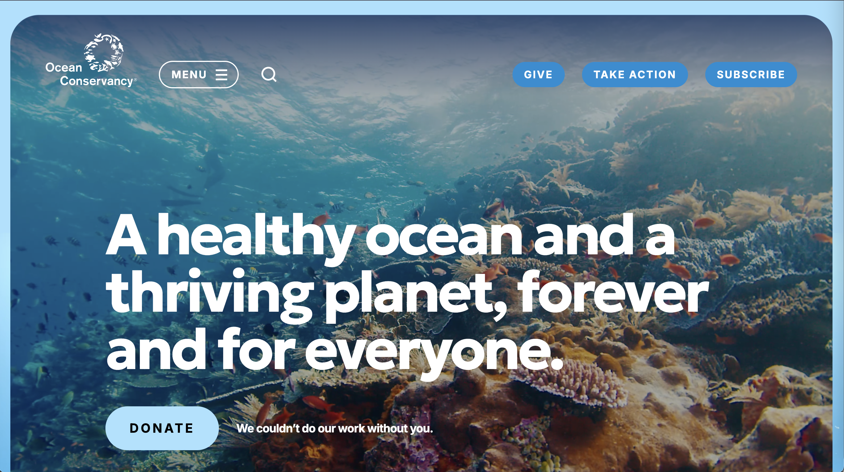 Why it stands out: Possibly one of the most visually beautiful sites on the web, Ocean Conservancy effectively uses marine imagery to create emotional connections while maintaining clean, professional design that doesn't overwhelm visitors.
