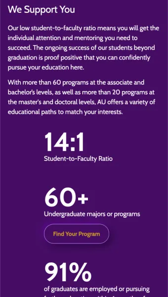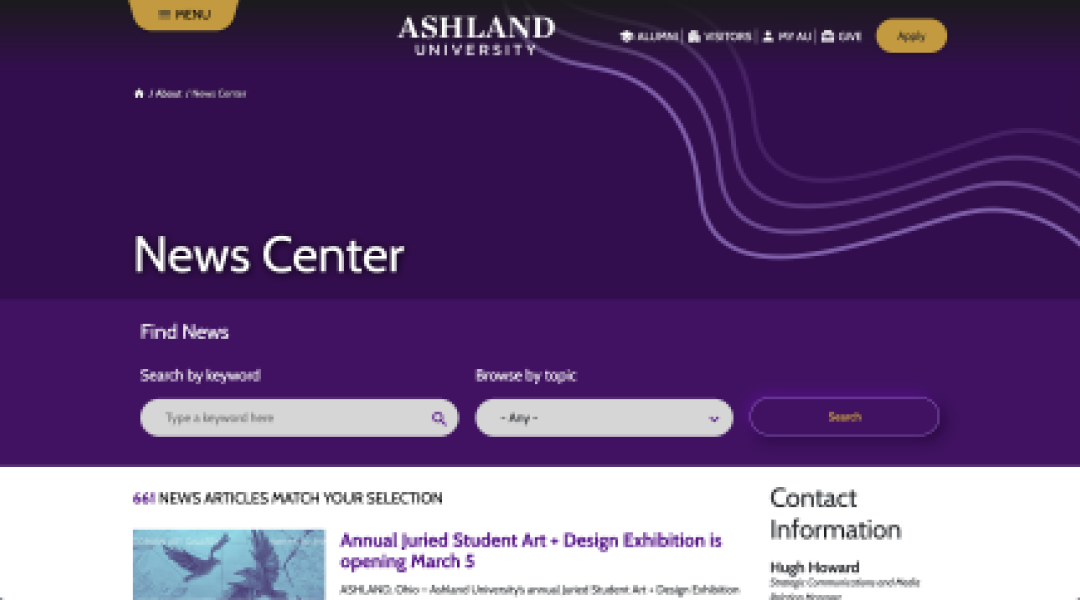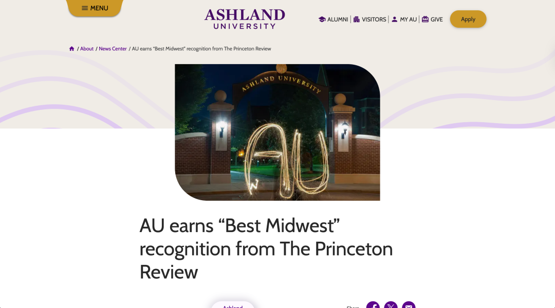 The initial response to the site redesign has been positive. We were able to successfully tie every element of Ashland’s new experience to its overall business objectives. The result is a digital environment that is a true reflection of how Ashland wants to be viewed in the higher education market.