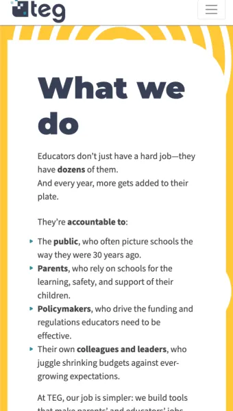 The initial project was finished under budget, and with time to spare. We also identified some options for improving the product, not simply scaling it. We’ve continued to work with TEG as a long-term partner on their API vision, which is looking into how the client can move beyond their current platform into content syndication throughout the state and beyond.